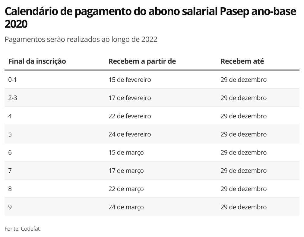 O Conselho Deliberativo do Fundo de Amparo ao Trabalhador (Codefat) aprovou na última sexta-feira (7), o calendário de pagamento do abono salarial PIS/PASEP deste ano. Os pagamentos se referem ao ano-base de 2020.